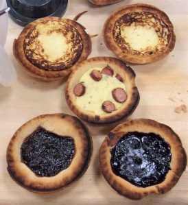 2nd batch with one with chopped lil smokies, bottom are fig jam to the left, wild blueberry to the right