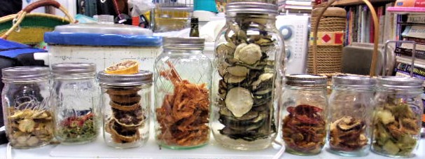 Lots of dried stuff – yellow squash, celery and tomato, lemon, apple, honeydew, cantelope, zucchini, tomato