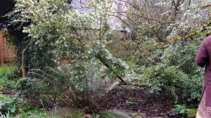The white one is called Wintersweet, and the one in front of me with the reddish buds is witch hazel.