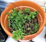 Herb Bunch – Tending went on all week in the garden, since it was dry. It’s a good time to clip out old growth and find weeds that are hiding at the very base of the plants. Many of the weeds start to sprout around this time of year, and pulling them when small is much easier than it will be even a month from now.