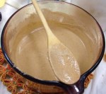 Once you have made the almond milk, you will need to strain the mixture through a sieve to remove as much of the almond bits as you can. Put the strained almond milk and salt into a pot and heat to boiling being careful not to overheat or to burn it.