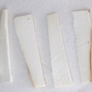 From the thinner slices, some skinned