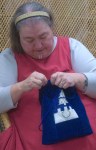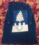 Project Day – Anja was back at the shop on this day, so she went to work on various projects while Loren was working on the Tinkle Loom. The pouch got done first. It had been embroidered and cut previously, but a new lining needed to be found since the first was mis-cut, then after it was stitched up and trimmed, the lining needed to be blind-stitched closed, then cords made, threaded and weighted.