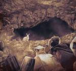 “The legend of the Whale in the bestiaries. The whale is a great beast who spends much time underwater but sometimes comes to the surface of the sea and rests there a bit. Because it is so huge, sailors sometimes mistake it for an island and land on it, which generally doesn’t bother the whale, but woe betide them if they make a fire on “land”! The whale plummets to the bottom of the waters, taking them and their ship with it, and all hands are lost to its wrath.”