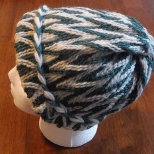 cap made from a Coptic pattern on p 161 of The Techniques of Sprang by Peter Collingwood