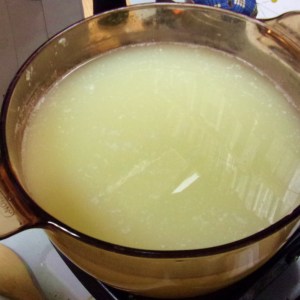 The last of the whey is being boiled for ricotta.