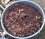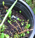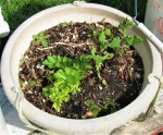 Herb Bunch – Lily of the Valley and Peonies went into pots on Tuesday. A bunch of seeds went in, too: peas in one of the railing planters, a few sunflowers, a pot of alexanders, and another pot of nettles. Anja started working on tags for the sale plants, as well as what’s in the garden.