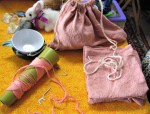 - ASLIV – 207 plus 4 puppets, 3 hippocras mix, 4 powder fort, 9 cheese spice and 10 powder douce packets, 10 tiny bobs, 8 pincushions, 5 pins, 5 snip case w/snips, lucet cords, 25 pouches for block-printing, 1 medium pouch, 4 small pouches, 12 bookmarkers, 14 unfinished pincushions, 1 sewing kit (except for bone needle), varnished stuff (124)