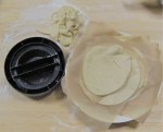 On Wednesday we started making up some of the excess pie dough ingredients from the feast, planning to freezer them after making some for now and some for freezing for potlucks. The first set of actual pieces was on Thursday: strawberry, peach and cherry.