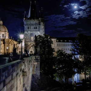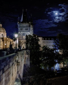 Charles bridge under full moon
