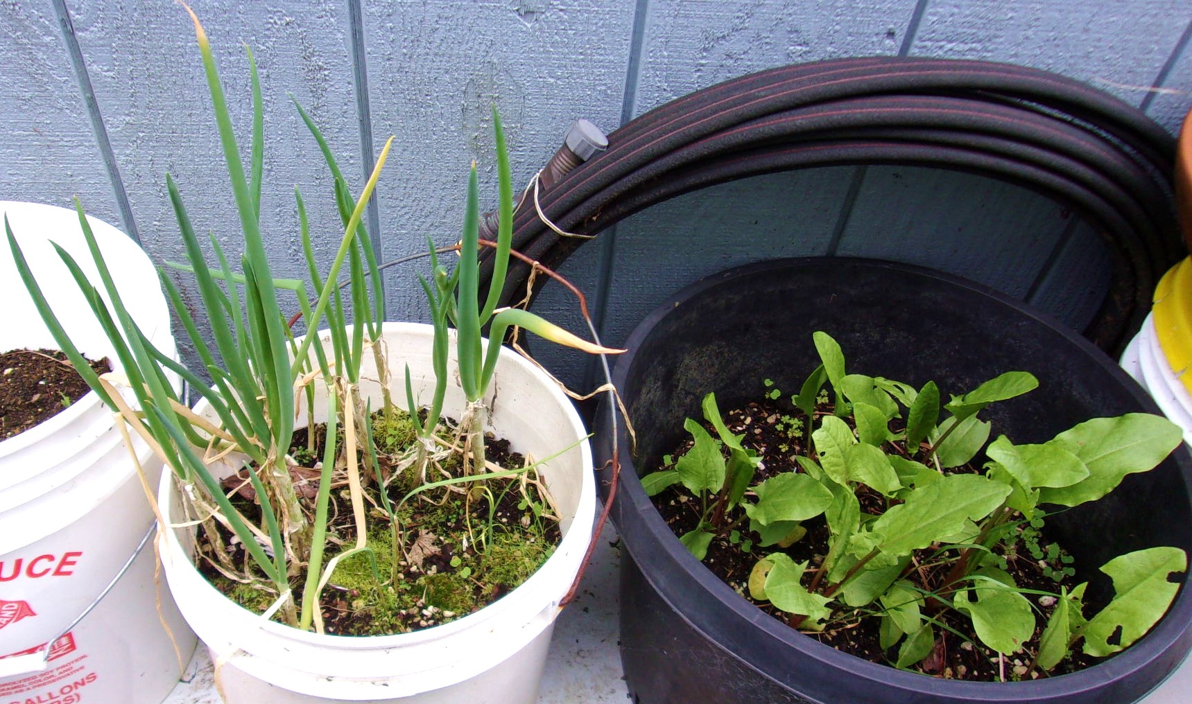 Shallots on the left, sorrel on the right