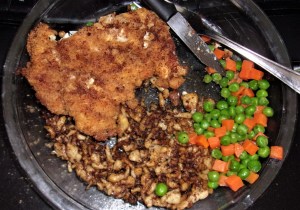 Rizky, top left, with spaetzel below and peas and carrots to the right. >>>>