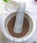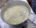 We had decided to make batch of hot wine mustard, because we needed it for the Mylates, but also because it’s tasty, 🙂 and we’ve been out for awhile. The mustard took forever to grind. It’s amazing, but a teaspoon takes a minute or so. An 1/2 cup took an hour with Loren and Anja taking turns with the pestle! We used a small hole sieve to get the already powdered stuff divided from the whole seeds 4 times and finally ended up with just that last tablespoon. Anja got all the ingredients measured into a cookpot while Loren went to get the balsamic vinegar that we had forgotten.