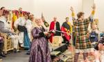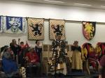 Yseult says, “Well, I think there were 17 of us this week for A&S Night. Lots of projects, singing, studying for the Sgt. trials, swapping of fabric and trim, sewing cloth and leather, darts, talking and laughing. We’ll do it again “on the 18th of April (but not in seventy-five – Hardly a man is now alive Who remembers that famous day and year”).”