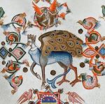 The pic below is a design that Anja’s been working on for quite some time. She worked out the pattern from the Jane Bostocke sampler, but it’s frustrating enough that the piece has taken flying lessons several times. After she warped her old, battered frame doing that, she put it away for a year and only just hauled it out and started work on it again.