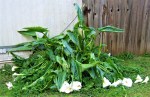 Monday evening Anja got some potting up done (lemon balm, mother-in-law’s-tongue and her petunia). Before that some pictures got taken around the park, and she discovered that a pot labeled, “lily” is apparently going to bloom and seems to be some kind of bromeliad, rather than a lily.