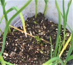 The weird onion has developed fingers! This is a gallery of pix over the last couple of months. Just the other night it actually *grabbed* Loren’s pants as he went past during the night. I told him we ought to name it “Audrey”, but he said, “No, Christopher!” “What?” “Christopher, the Wauken onion.” <sigh>
