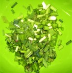 - Chop leek and onion, fairly small and dump over pork.