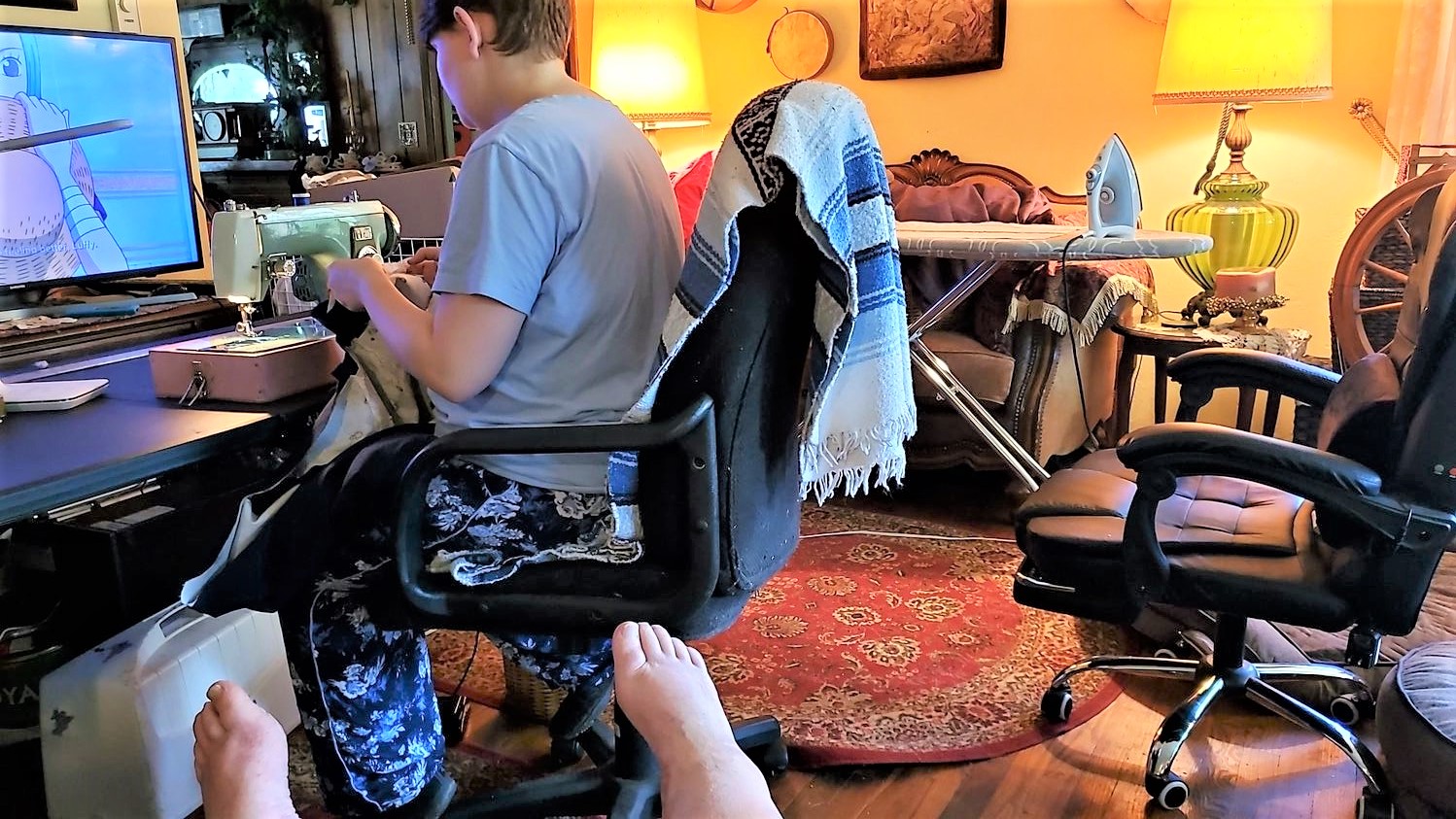 Ailantha – Sewing day! Working on pants, tunic, vest, under dresses for 3, sideless surcoat, coteharde, and norse smokrr and hangerock for 2