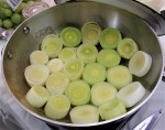 - Cut just the white part of the leeks into about ½ inch wheels.