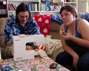 Oh, my, that was a *tasty* feast! We had a lot of folks there for the potluck this week, along with people sewing, embroidering and wood-working during the day. Didn’t have a lot going on during the week, but the ongoing projects, although the tinkle loom’s recipient was ecstatic to have gotten it.