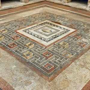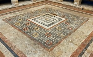 Roman mosaic of a labyrinth rendered with a remarkable threedimensional effect in the peristyle courtyard of the Domus Romana Malta
