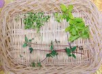 Herb Bunch – In the early part of the week the plants from last week got shifted into the garden area. Some harvesting of greens for sandwiches got done and a lot of watering. The lemon balm went into the open sign window for the shop, so it’s out of range of the snails, this time. They ate the last one right down to the ground.