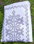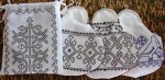 - ASLIII – 7 (6 embroidered pouches went into the mail) plus 25 pouches for block-printing, 15 (plus 25 unfinished) pincushion, 2 sewing kits (except for bone needles), varnished stuff (124) 7 snap pouch, one double drawstring pouch, 4 brocade pouch