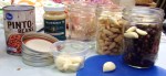 Anja made bean pickles from canned beans and the long-since-made pickle broth with added garlic. The “swishings” from the can and the strainings from pouring the beans into a colander and then pouring water over them to get off the “slime” went into a box with some large cloves of garlic as a soup starter. This was made with the standard pickle broth recipe.