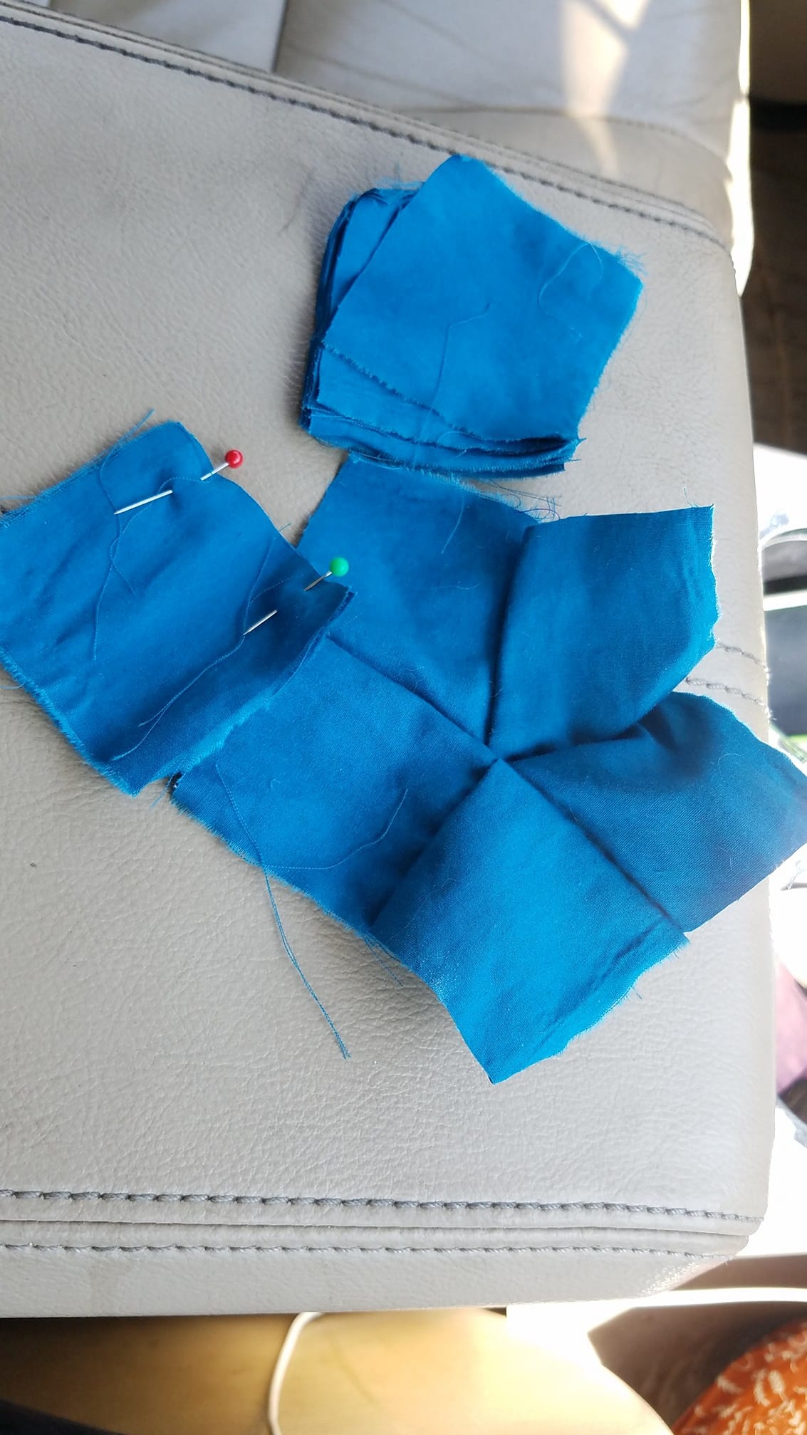 Isabeau – Using the pin cushion pattern as inspiration, I’m making a pattern weight. I’m sewing together 10 squares instead of 15.