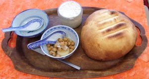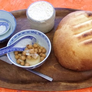 Nibbles – bread, tvarog and pickled chickpea