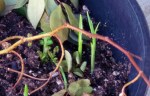 Herb Bunch – A lot of plant tending needed to be done this week. A few more needed to be divided. The big thing is that new stuff is coming up in the rose pot. There were some garlics showing last week, but here are the parts that are showing. The question is, “are they roses or potatoes?” 🙂 The baby aloe has already been adopted.