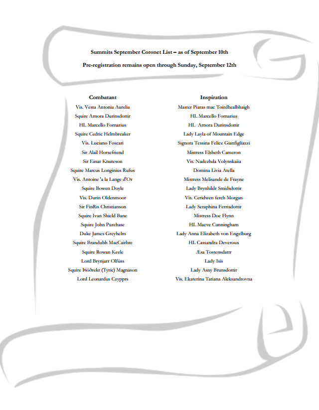 Combatants & Inspirations for Summits Coronet