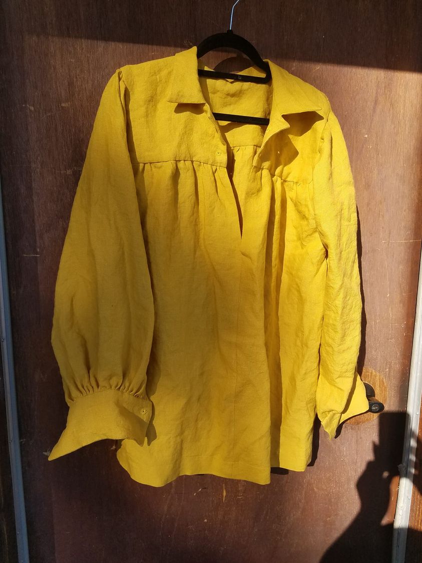 Isabeau – I’ve been working on a shirt that will make its way to PA… I have 2 more hand sewn grommet holes to put in….