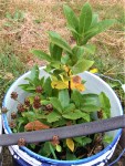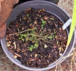Herbs in the Garden – Mostly I sorted stuff around and weeded the mint, but I had a kiddo stop by with her mom and she wanted to know the names of everything. I tossed the old dahlia tubers under the porch, so I could use the pot they were in, but pulled out two that had shoots and planted those.