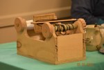 - ASLIV – 185+16+6=207 plus 2 puppets, 3 hippocras mix, 4 powder fort packets, several cheese spice and powder douce packets, 5 tiny bobs, lucet cords, 25 pouches for block-printing, 1 medium pouch, 4 small pouches, 12 bookmarkers, 18 unfinished pincushions, 1 sewing kit (except for bone needle), varnished stuff (124)