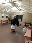 Stuff got sorted around and various dishes started. James got there and we started setting up the hall….although the lights never got set out. We got a mulled cider going and put together the beginnings of the daytime snacks.