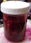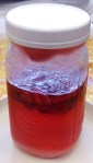 We set up a sugar-preserved raspberry jar on Monday (7/8), then strawberries on Friday, adding to the previous jar and starting a 2nd.