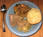 “Norse” pork roast – speculative recipe – This is the kind of thing that a cook would do with ingredients and equipment that is to hand. Crockpots are the modern equivalent of stone or ceramic crocks set in/by the fire to slow cook. All of these ingredients would have been available at least in the southern Norse lands.
